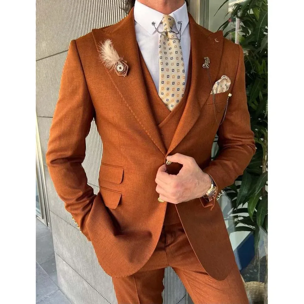 Мужской однобортный смокинг, деловой Повседневный смокинг с пиковым отворотом, 3 предмета