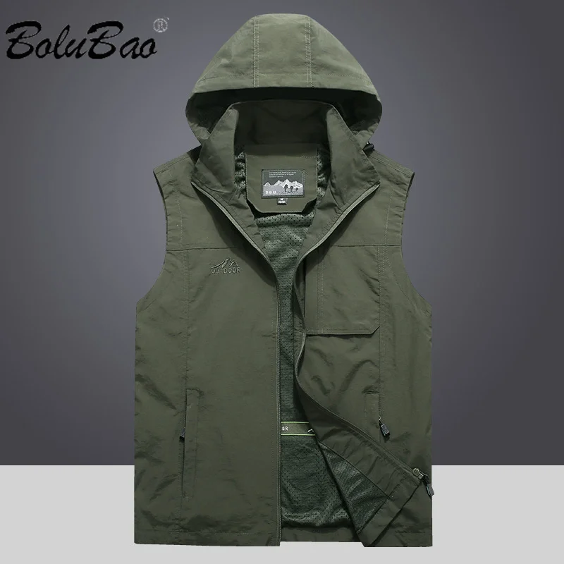 Мужской однотонный жилет BOLUBAO, повседневный уличный жилет с большими карманами и капюшоном, 2024
