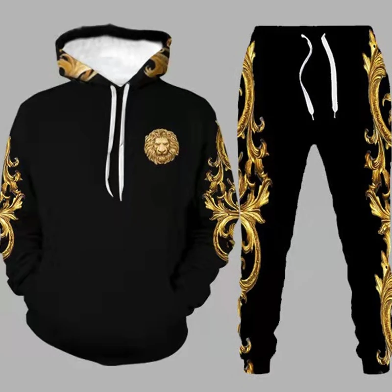 Мужской повседневный костюм с 3D-принтом, свитшот с капюшоном и спортивные штаны