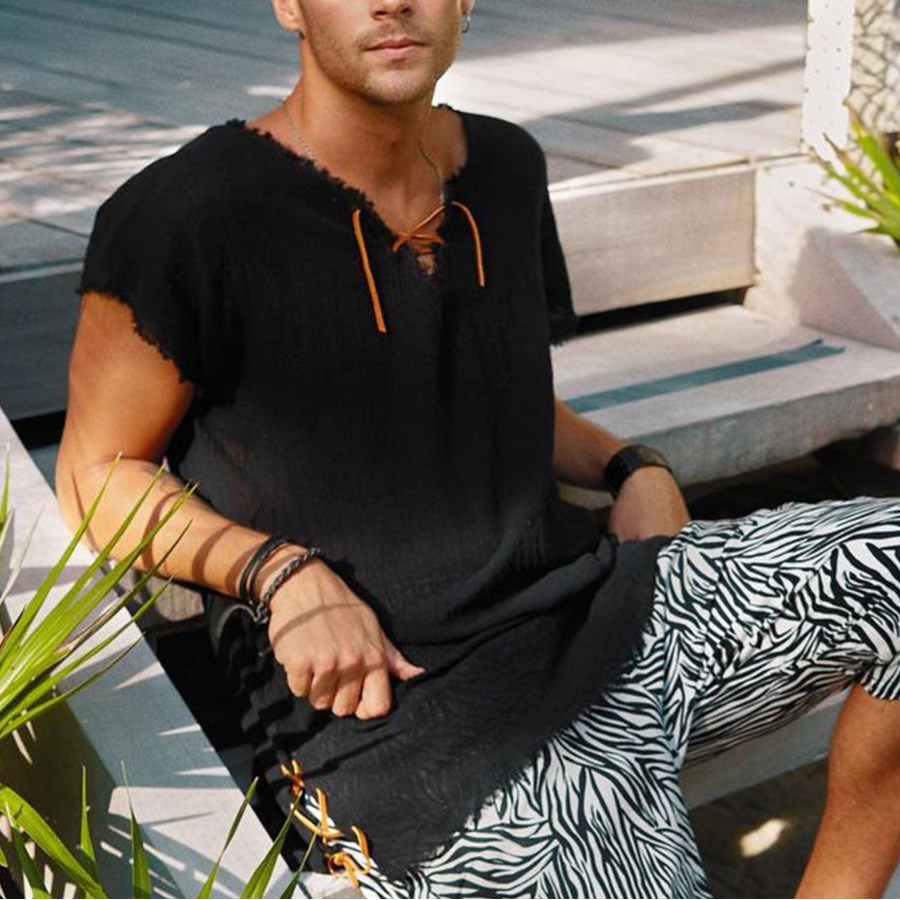 t-shirts,мужской праздничный льняной топ без рукавов с v-образным вырезом