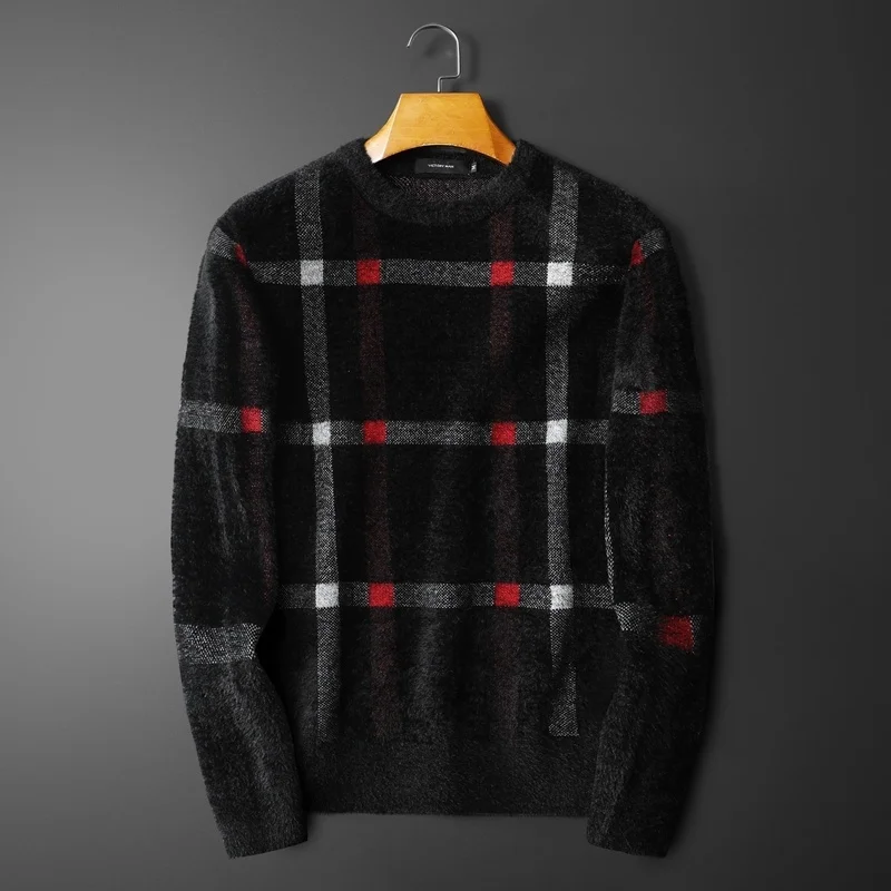 Мужской приталенный Трикотажный свитер с длинным рукавом и принтом в клетку