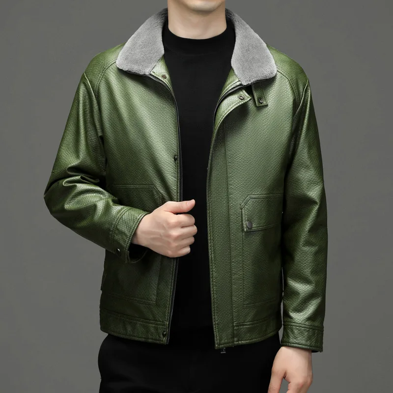 Мужской пуховик из искусственной кожи, повседневный теплый меховой воротник, новинка зимы 2023
