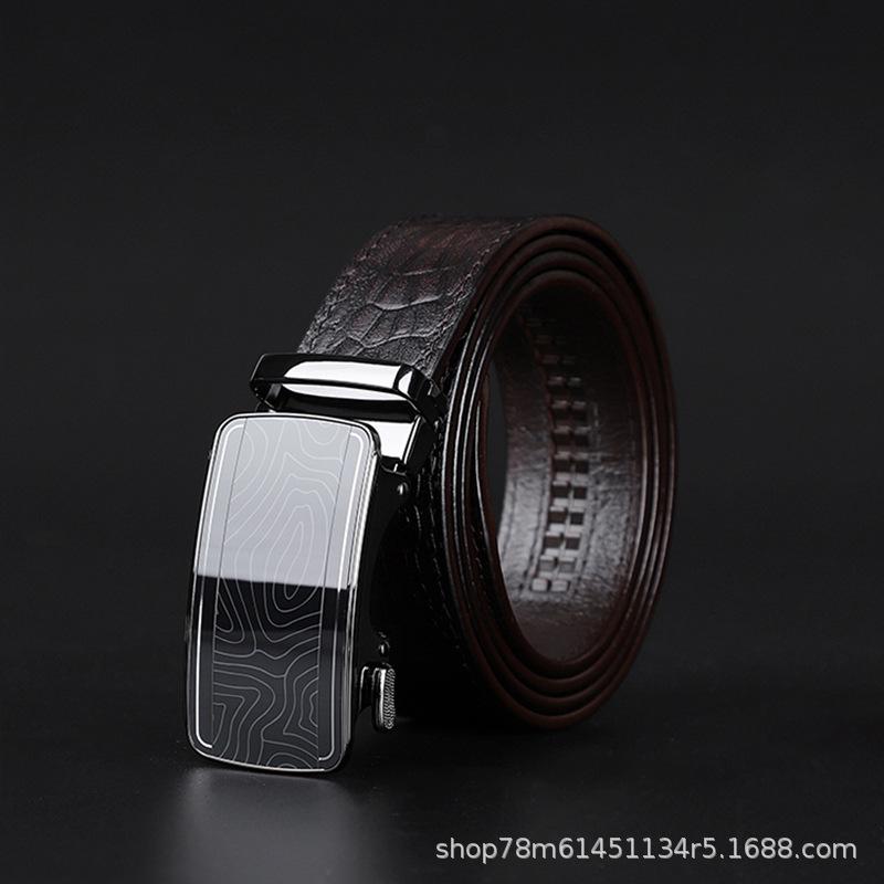 Мужской ремень из натуральной кожи с автоматической пряжкой из натуральной кожи первого слоя, простой и универсальный, для бизнеса, прямые продажи The extended model can be customized темно-коричневого