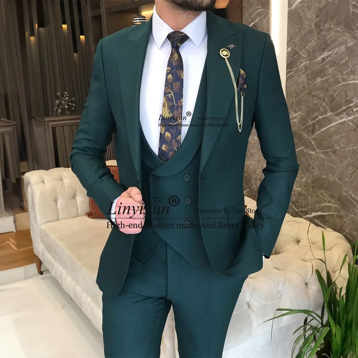 Мужской свадебный смокинг, костюм из трех предметов, облегающий деловой пиджак, жилет и брюки
