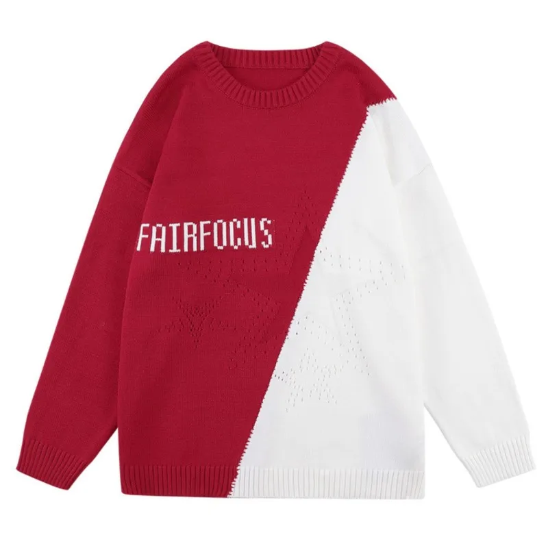 Мужской свитер в стиле хип-хоп, Свободный Повседневный контрастный свитер с круглым вырезом и надписью, Осень-зима 2023