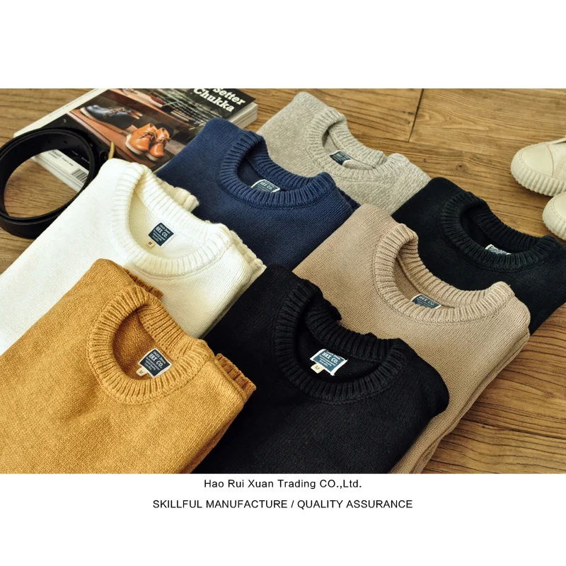 Мужской свитер, пуловер, свитер, зимняя одежда, винтажный свитер, тонкий вязаный свитер с круглым вырезом, однотонный хлопок
