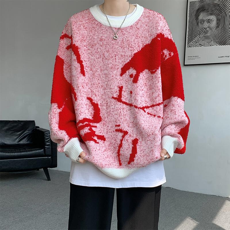 Мужской свитер с круглым вырезом Контрастные пуловеры Трикотажные повседневные толстовки Y2K Пуловеры для мужчин 5XL красный