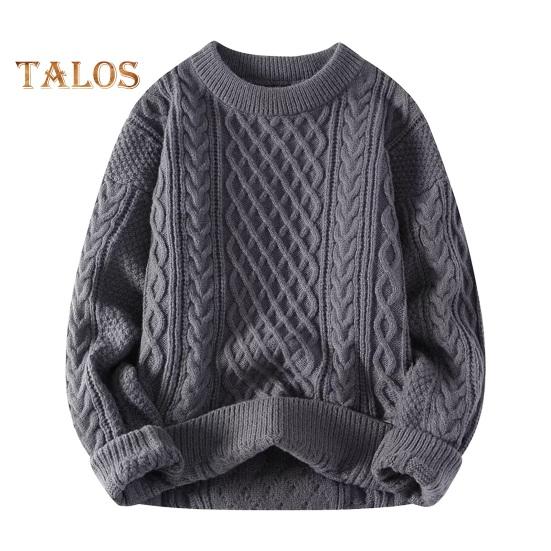 Мужской свитер с ромбовидной текстурой, свободный, толстый, с круглым вырезом, однотонный, с длинными рукавами, эластичный трикотаж, повседневная одежда, школьный свитер M серый
