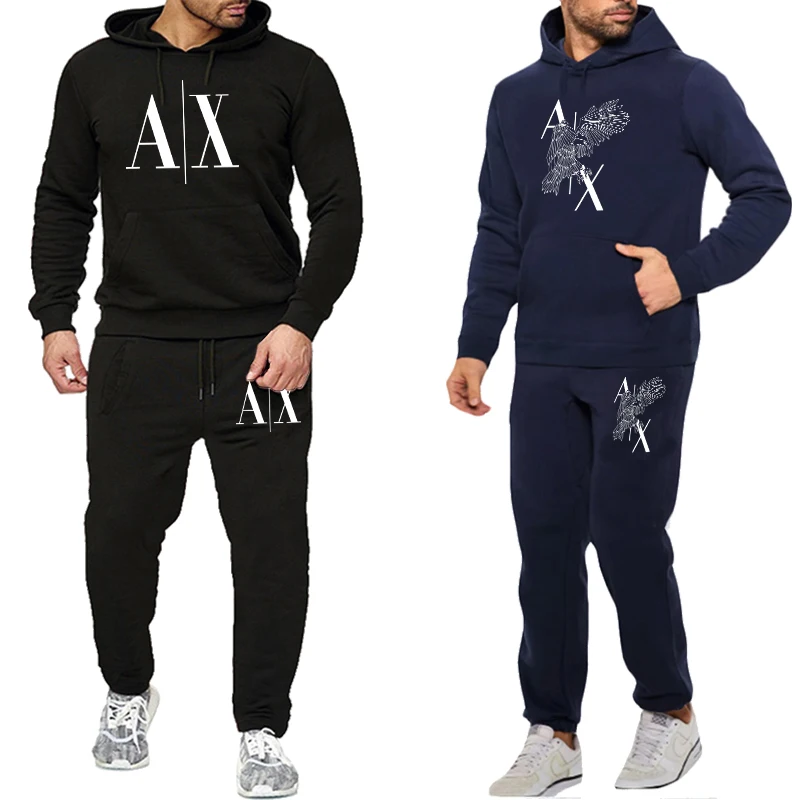 Мужской спортивный костюм, Повседневная Толстовка с капюшоном и спортивные штаны
