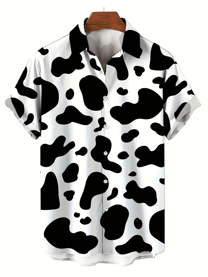 Гавайская рубашка с рисунком коровы для косплея для мужчин и женщин, пляжная блузка с 3D принтом животных, летняя уличная одежда с короткими рукавами, рубашки на пуговицах