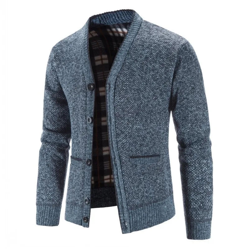 Мужской теплый трикотажный кардиган, облегающий свитер, плотный вязаный жакет, одежда для зимы