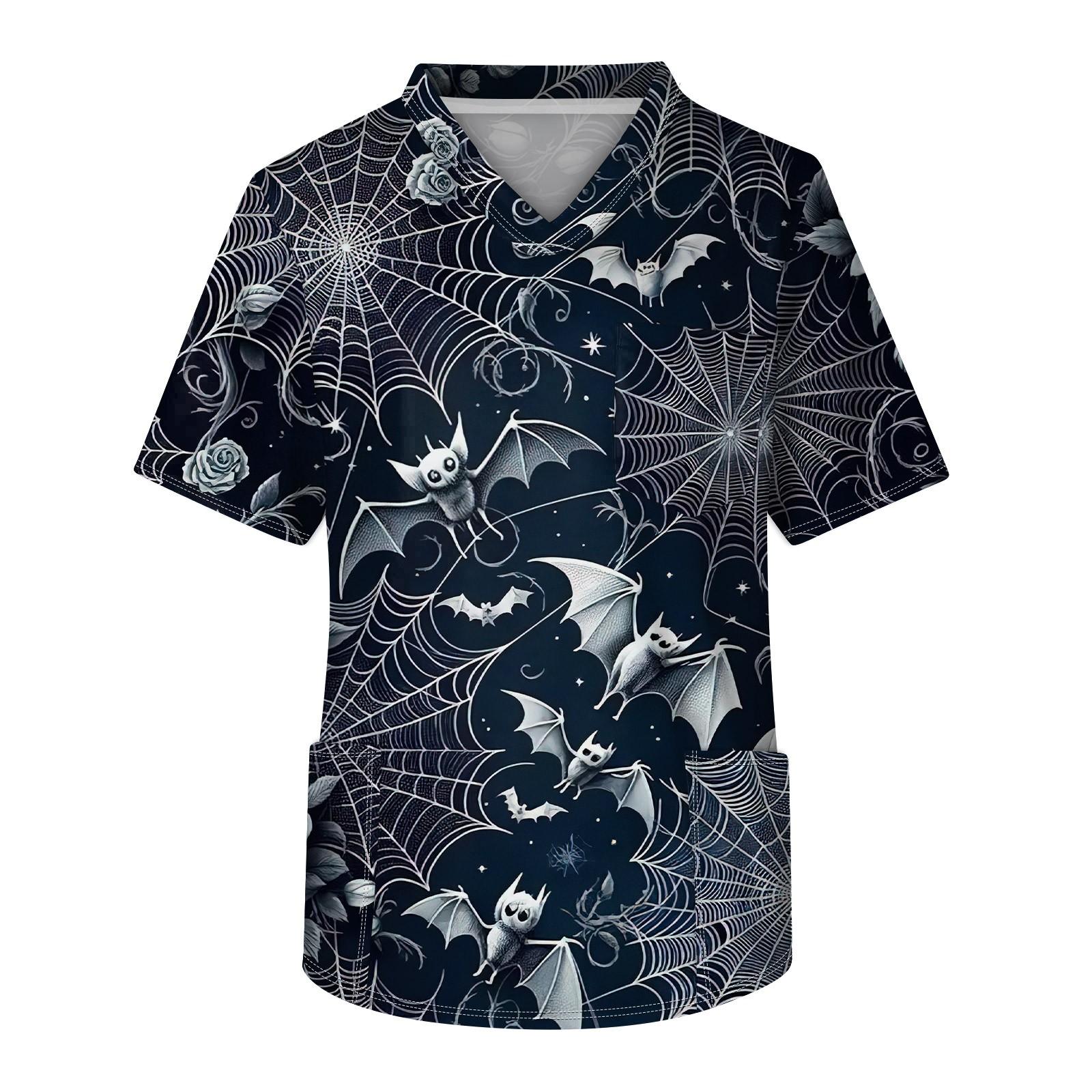 Мужской топ с короткими рукавами и v-образным вырезом на Хэллоуин с принтом на груди и карманом для ухода за кожей XL