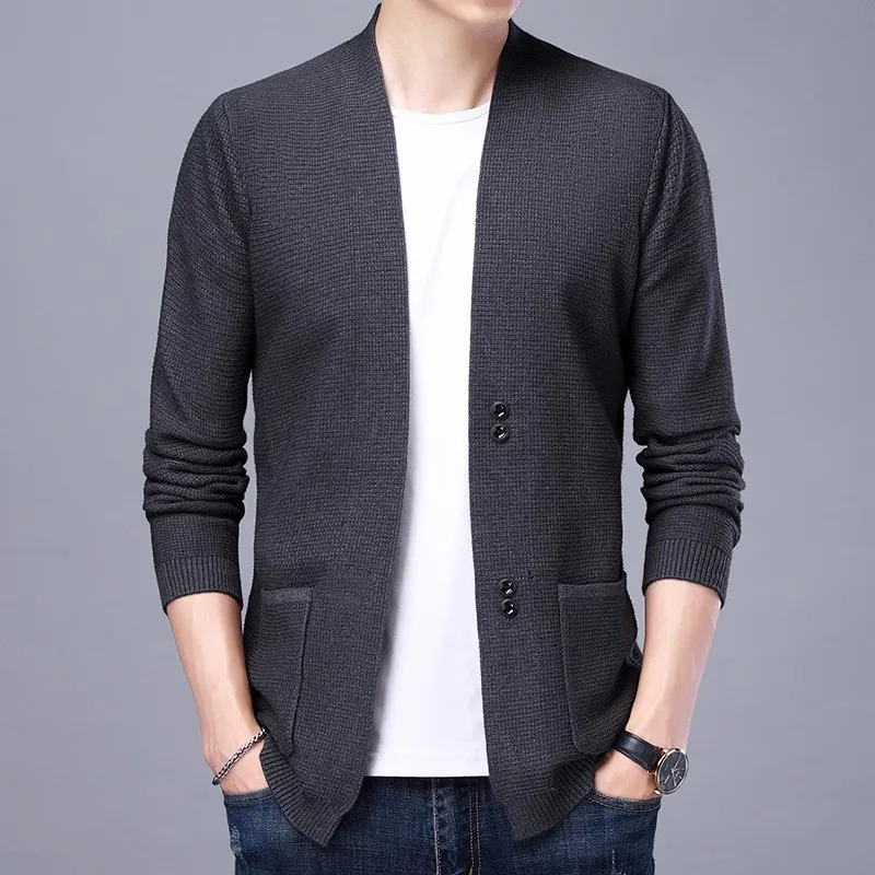 Мужской трикотажный кардиган с V-образным вырезом, на осень/зиму
