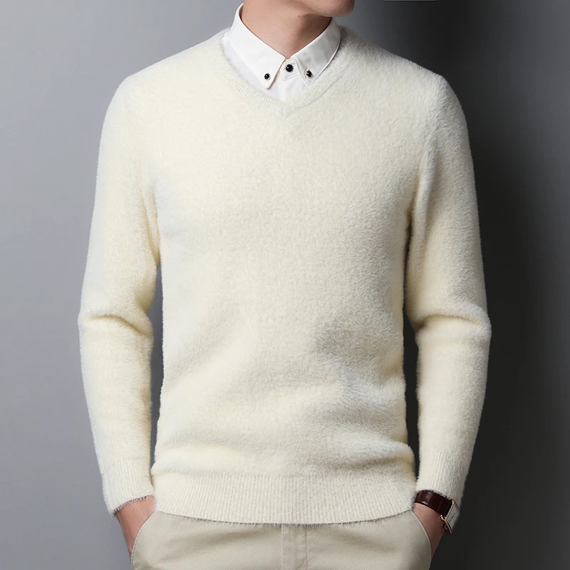 Мужской утепленный бархатный свитер с V-образным вырезом и длинным рукавом