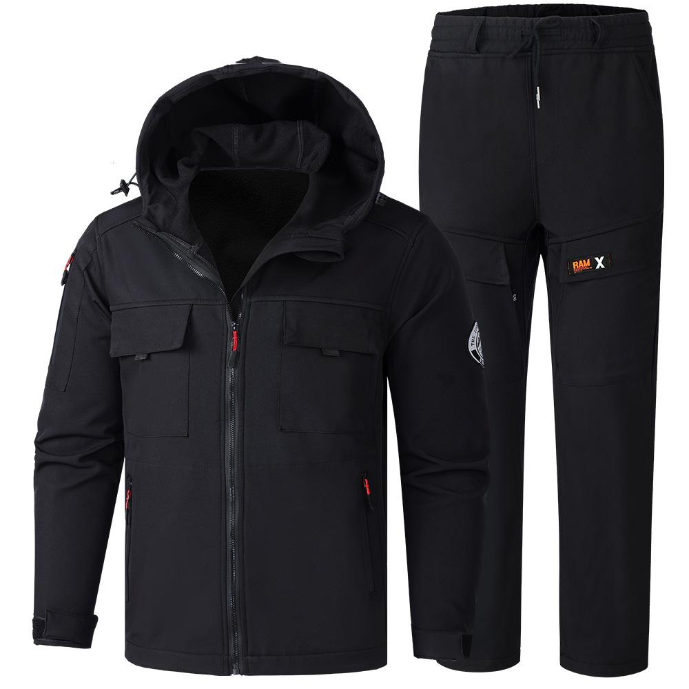 Мужской утепленный комплект из нескольких карманов, спортивный рабочий костюм большого размера, куртка + брюки, комплект из 2 предметов M