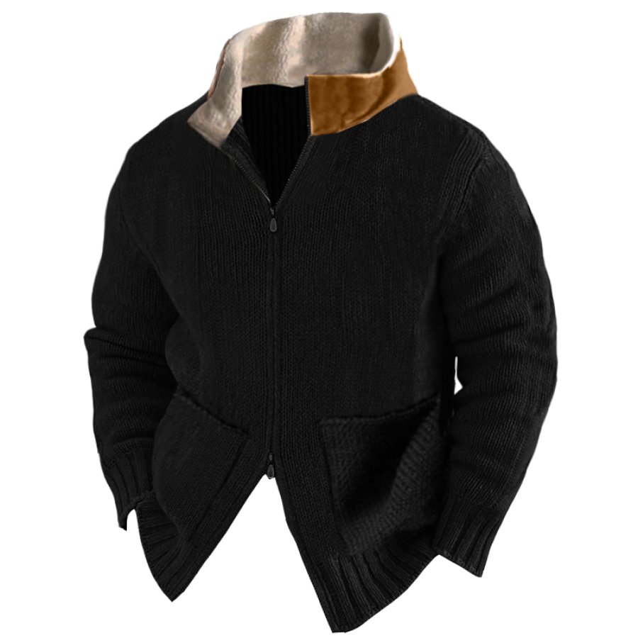 coats & jackets,мужской флисовый вязаный кардиган в стиле ретро с мягким сенсорным воротником и цветными блоками куртка-свитер