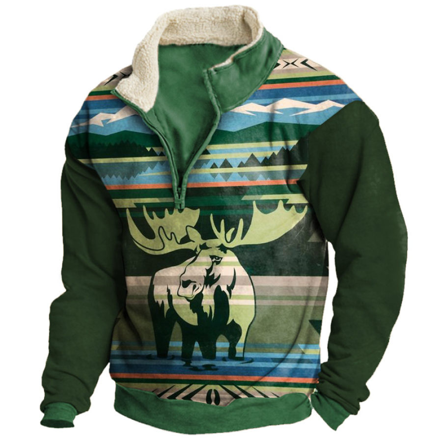 Мужской флисовый свитшот с молнией до половины винтажного принта Old Moose