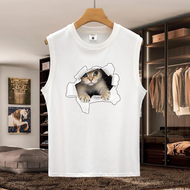 Мужской хлопковый жилет без рукавов: Летний новый стильный бренд для спорта и фитнеса. L белый