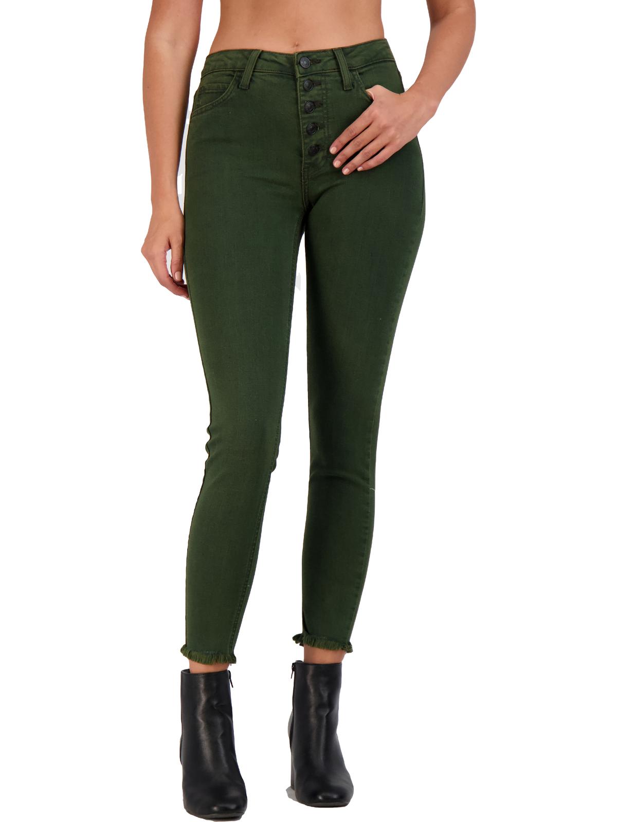 Женские узкие джинсы с пуговицами и необработанным краем Just Black, цвет forest