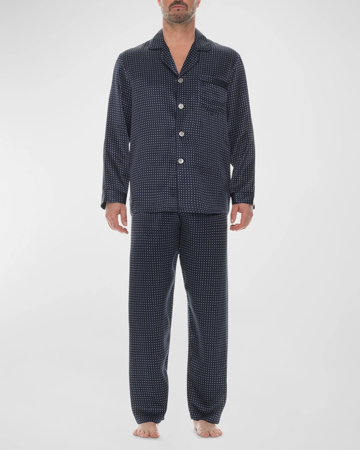 Мужской шелковый пижамный комплект в горошек Majestic International, цвет Navy Dot