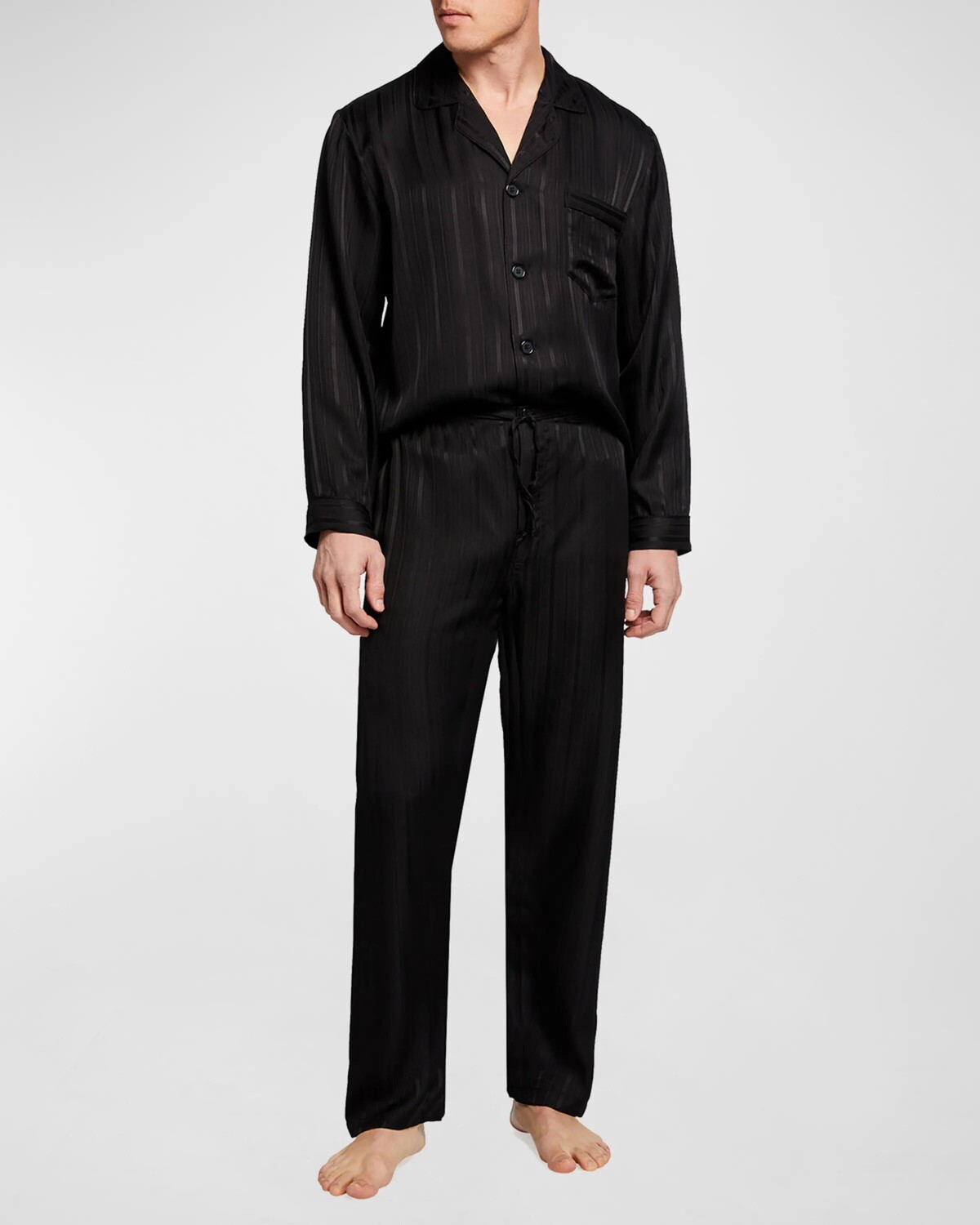 Мужской шелковый пижамный комплект в полоску с узором «елочка» Majestic International, цвет Night