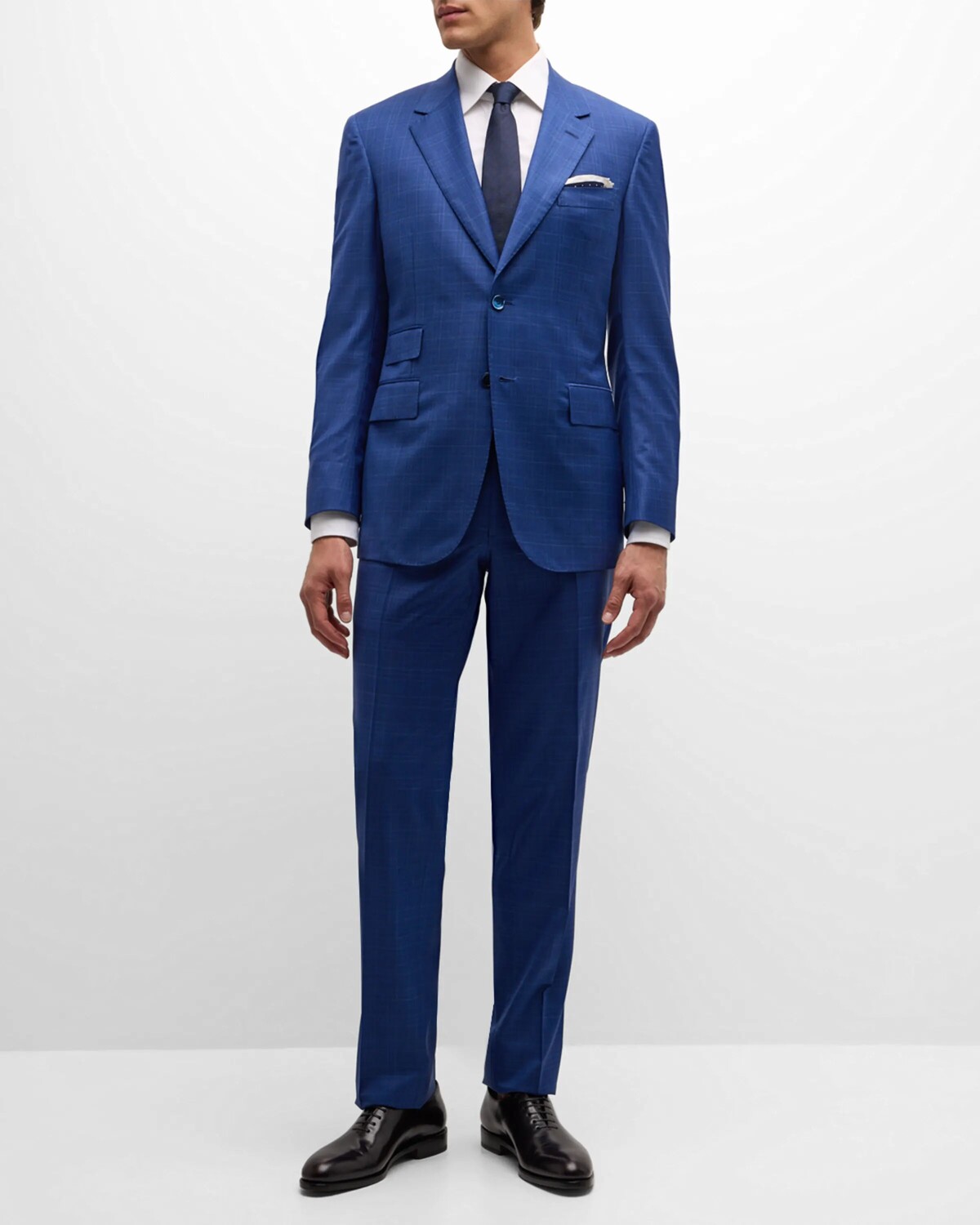 Мужской шерстяной костюм в клетку Stefano Ricci, цвет Blue