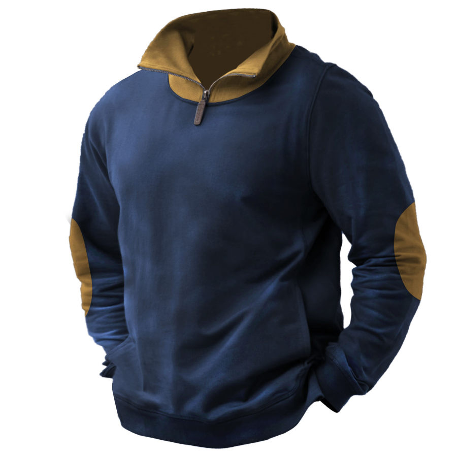 Муж. Толстовка Винтаж Молния на четверть четверти Карман с цветными блоками Повседневные Верхушки Темно-синий