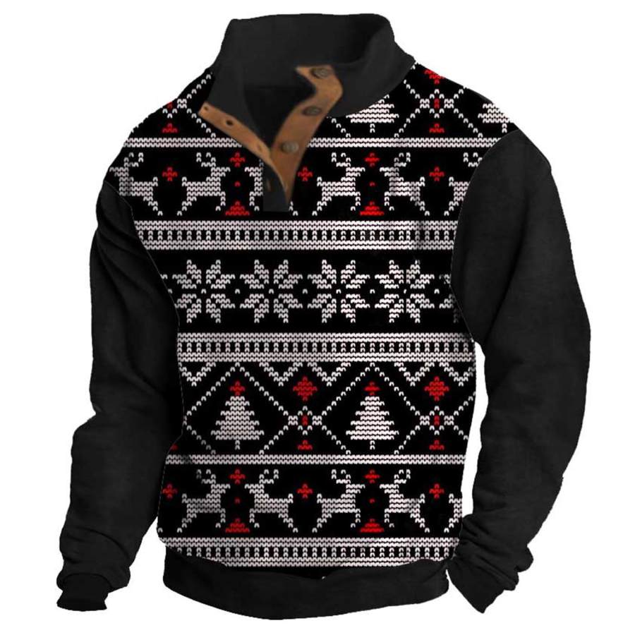 Муж. Толстовка Рождественский воротник-стойка с воротником на пуговицах Повседневные Топы Черный