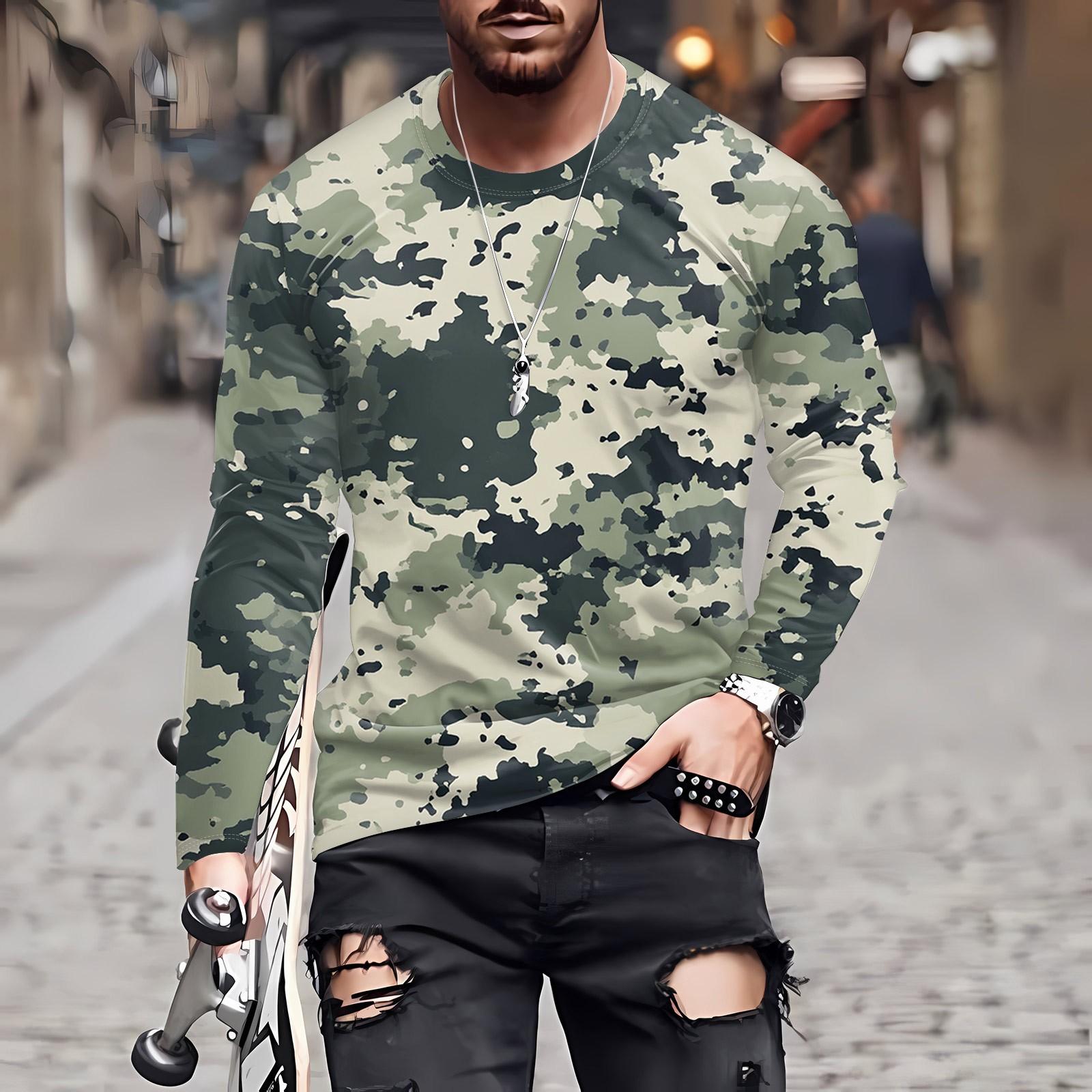 Муж. Футболка Круглый вырез Одежда Одежда На открытом воздухе Длинный рукав С принтом Модельер Винтаж M