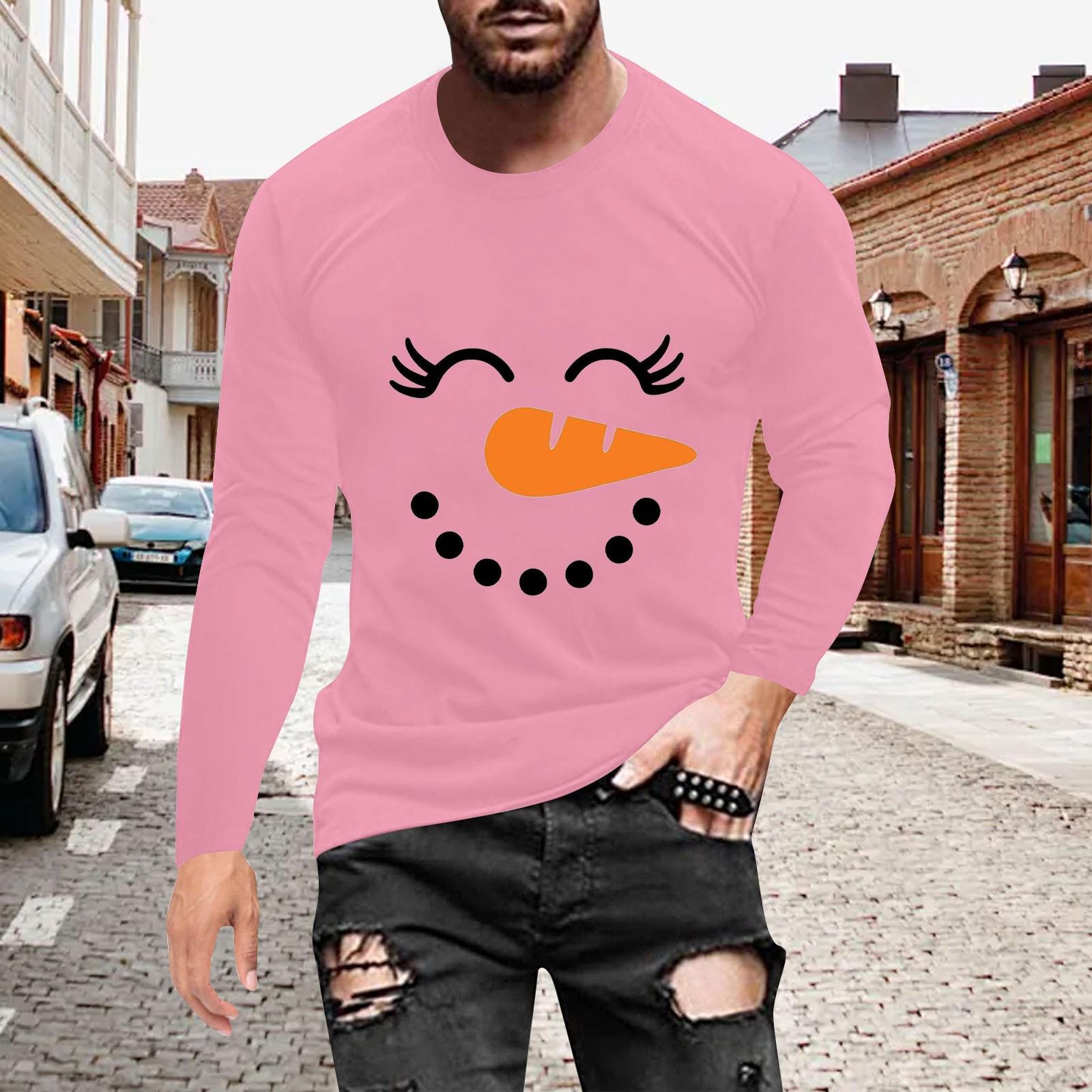 Муж. Футболка Круглый вырез Одежда Одежда На открытом воздухе Длинный рукав С принтом Модельер Винтаж M розовый