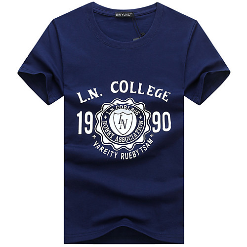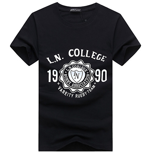 Муж. Футболка Хлопок, Круглый вырез Буквы