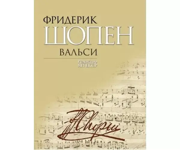 Музична Україна Ноти для фортепіано Шопен Ф. "Вальси". Редактор Ян ЕкєрВальси Фридерика Шопена продовжують серію видань фортепіанної спадщини композитора, метою якої є представлення в Україні його творчості в аутентичному вигляді.За основу взято одинадцятий том серії А та двадцять сьомий том серії В повного зібрання творів геніального польського композитора у редакції Яна Екєра. Фундаментальна праця, випущена у світ Польським Музичним Видавництвом (PWM) у 2010 році з нагоди 200-ліття з дня народження композитора, базується на всіх доступних джерелах, котрі були проаналізовані з використанням сучасної наукової методології.