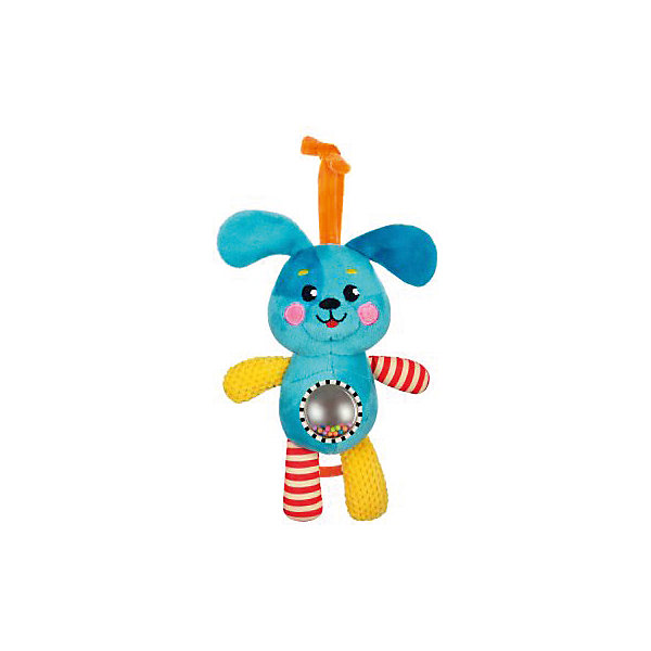 На животике щенка расположен шар с безопасным зеркальцем и разноцветными пластиковыми шариками, которые гремят при движении. Игрушка обладает рядом звуковых эффектов, которые сделают ее еще более привлекательной в глазах малыша.