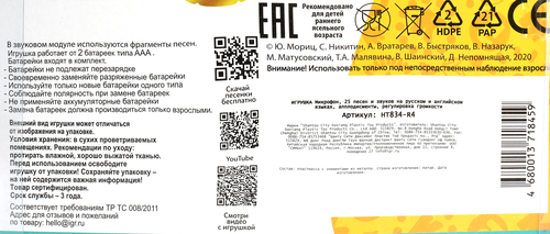 Музыкальный микрофон УМКА русские и английские песни, Арт. 312991