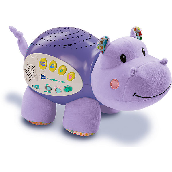 Музыкальный проектор звездного неба Vtech «Бегемот» имеет разноцветное свечение. Прибор включается на заданное время или реагирует на плач ребенка автоматически. Приятные мелодии и звуки убаюкивают малыша. Когда ребенок станет постарше, с бегемотом можно играть как с игрушкой – у него мягкая голова и лапки. Сделано из качественных материалов.