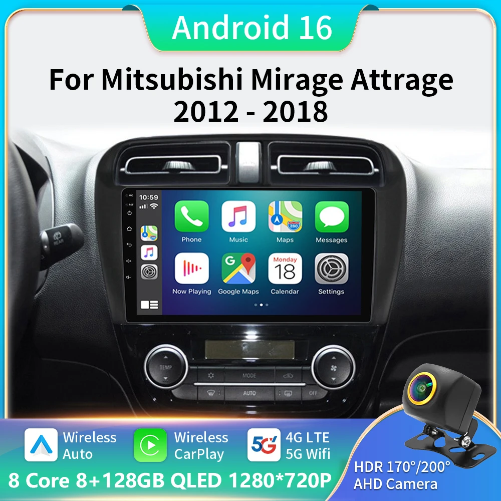 Мультимедийная магнитола 2Din, Android 13, для MITSUBISHI Mirage Spacestar Attrage 2012-2018, GPS-навигация, Carplay, 4G, Wi-Fi плеер