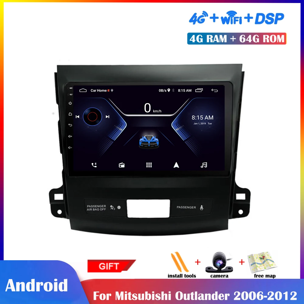 Мультимедийный плеер 9 дюймов Android для Mitsubishi Outlander 2006-2012, автомагнитола, стерео, DSP, IPS, сенсорный экран, Wi-Fi