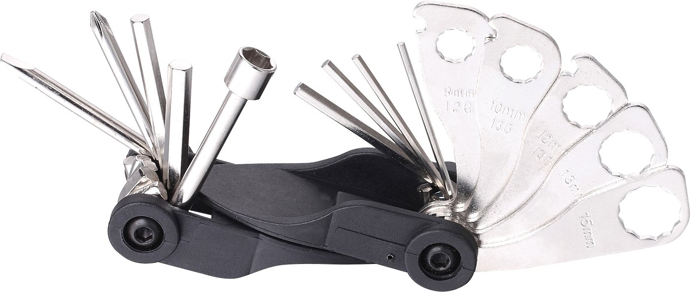 ключ накидной/отвертка крестовая/отвертка плоская/шестигранник, металл, серебристый/черный