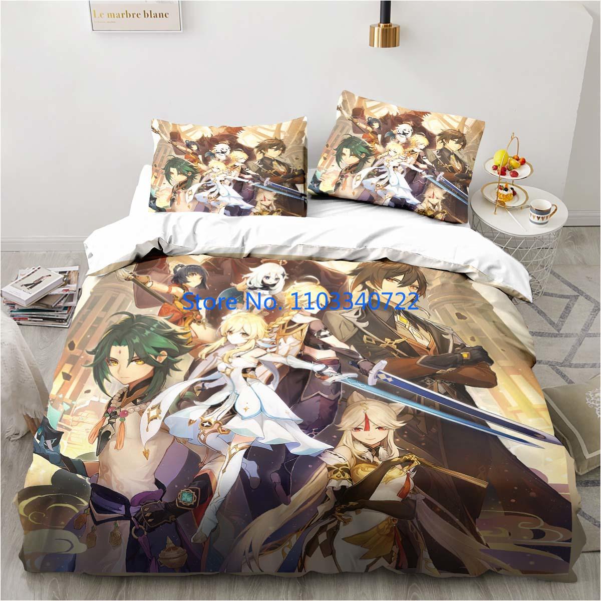 Мультфильм аниме Genshin Impact Game постельное белье пододеяльник с принтом одеяло покрывало постельное белье для мальчиков и девочек комплекты постельного белья декор спальни Child 120x150cm