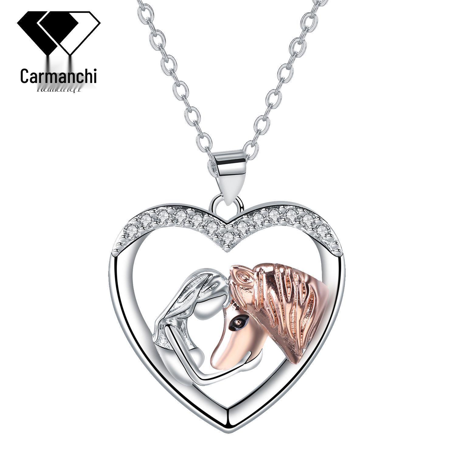 Мультяшная девочка и лошадь ожерелье с сердцем - Уникальные женские украшения с универсальным дизайном розового золота