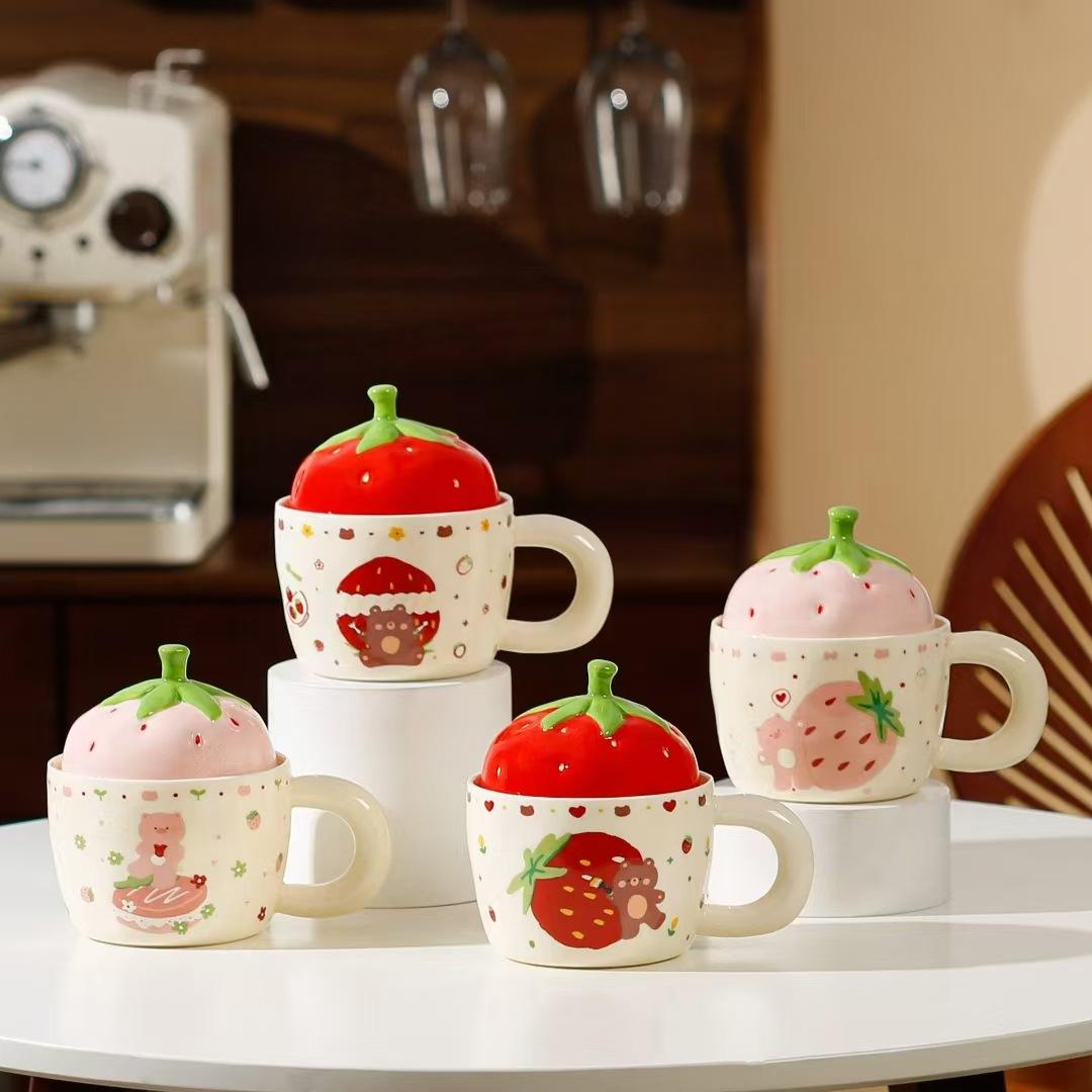 Мультяшная клубничная кружка с крышкой подарок на день рождения милая офисная чашка для завтрака креативная керамическая чашка для питья 301-400ml