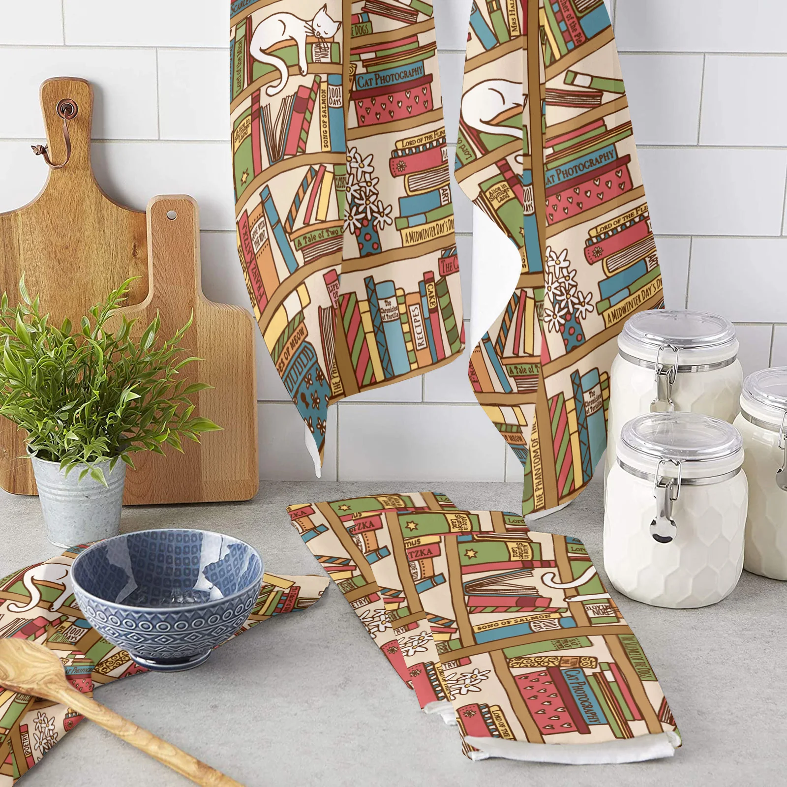 Мультяшная книжная полка, набор кухонных полотенец со спящим котом, салфетка для чистки, кухонные аксессуары, салфетка для мытья посуды, дом...