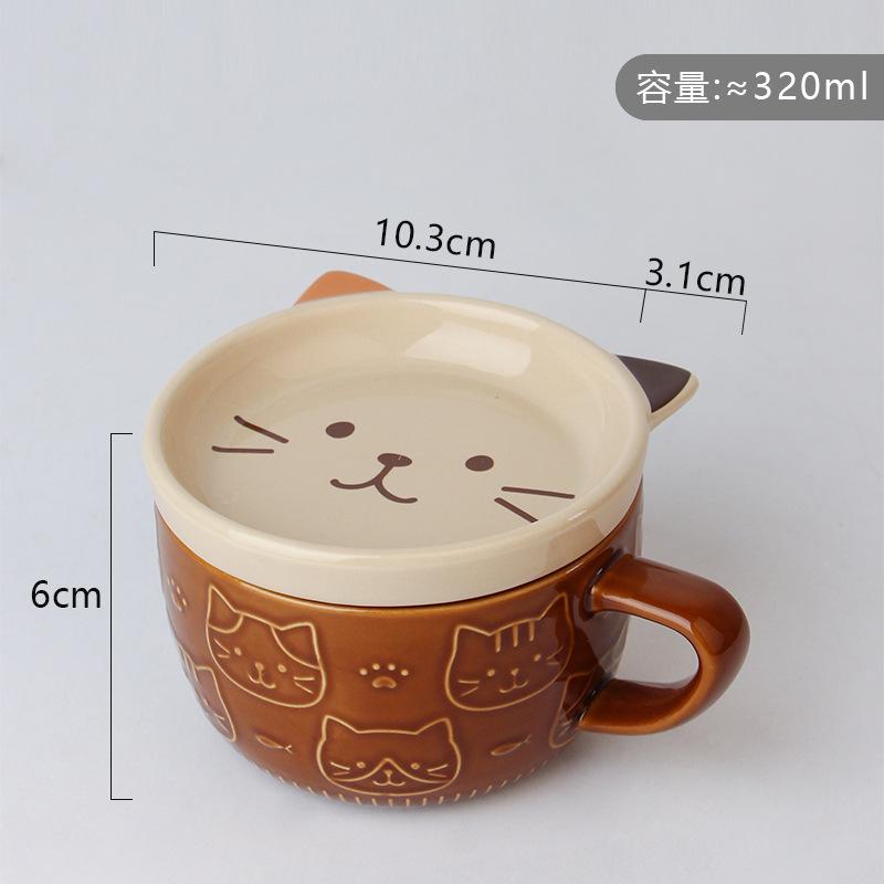 Мультяшная кружка для завтрака в японском стиле с изображением Сиба-ину и панды, с крышкой, керамическая кофейная чашка, милая детская кружка, кружка для пары, домашний декор 300mL