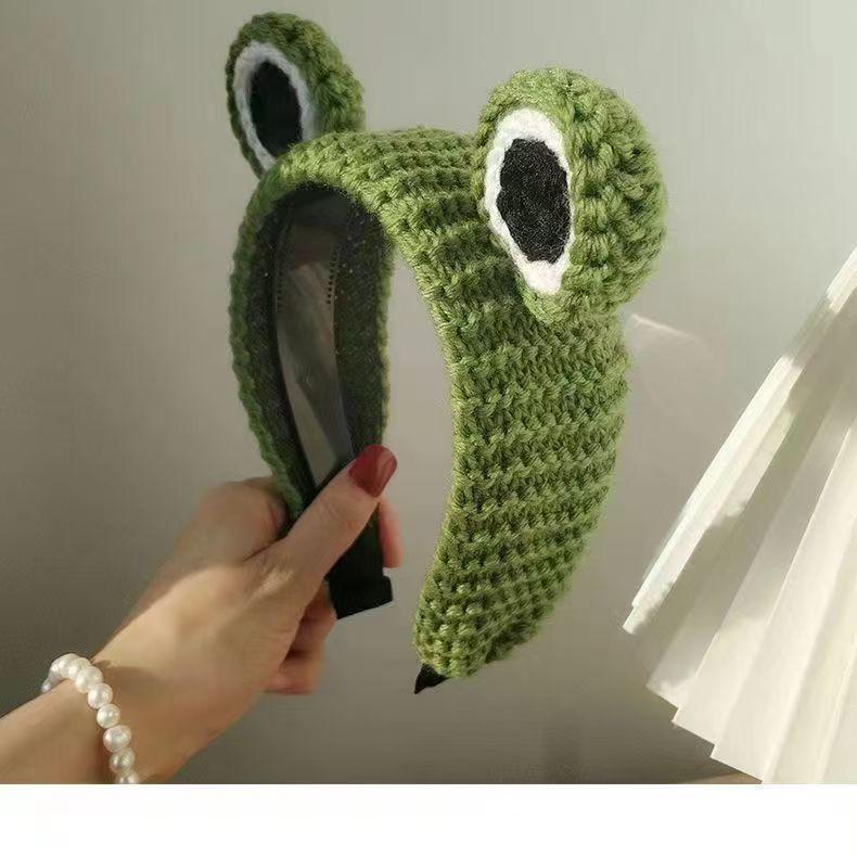 Мультяшная милая вязаная повязка на голову с большими глазами для умывания - Нескользящая, Осень/Зима зелёный