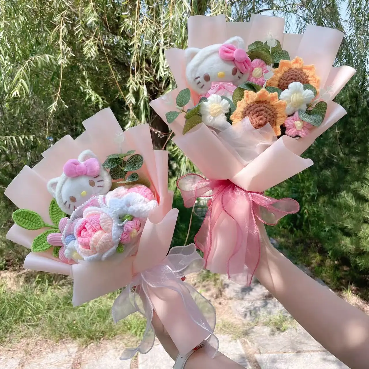 Cartoon My Melody Kuromi Cinnamoroll Kt Cat Plush Doll Toy Flower Bouquet Gift Box Valentine's Day Christmas Graduation Gifts