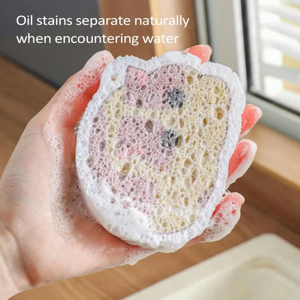 Мультяшная салфетка из сжатой древесной целлюлозы, хлопчатобумажная губка для мытья посуды, салфетка для грязи, инструмент для мытья посуд...