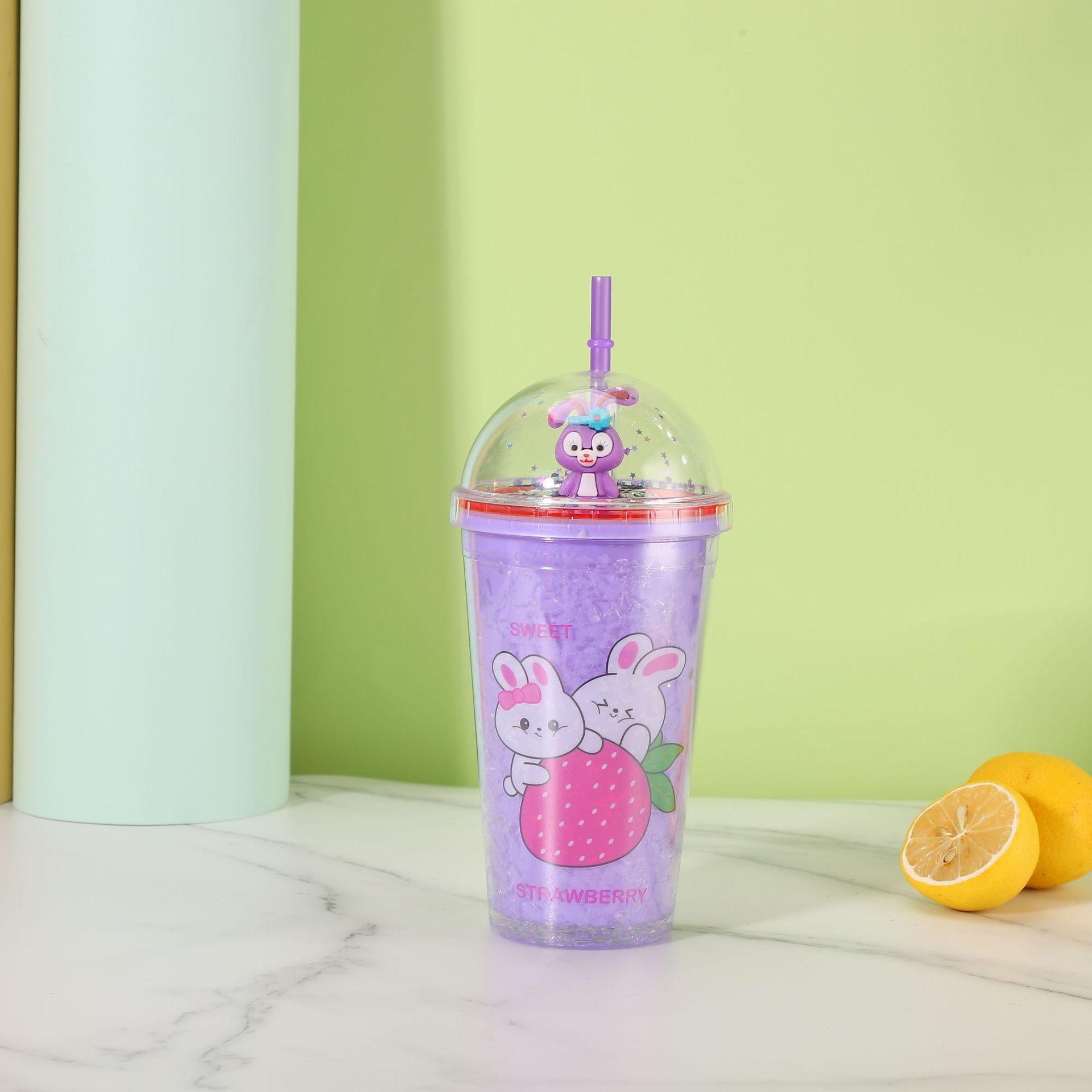 Мультяшная студенческая креативная портативная портативная чашка, летняя уличная микро-пейзажная соломенная пластиковая чашка для воды, чашка для куклы-кролика 450ml