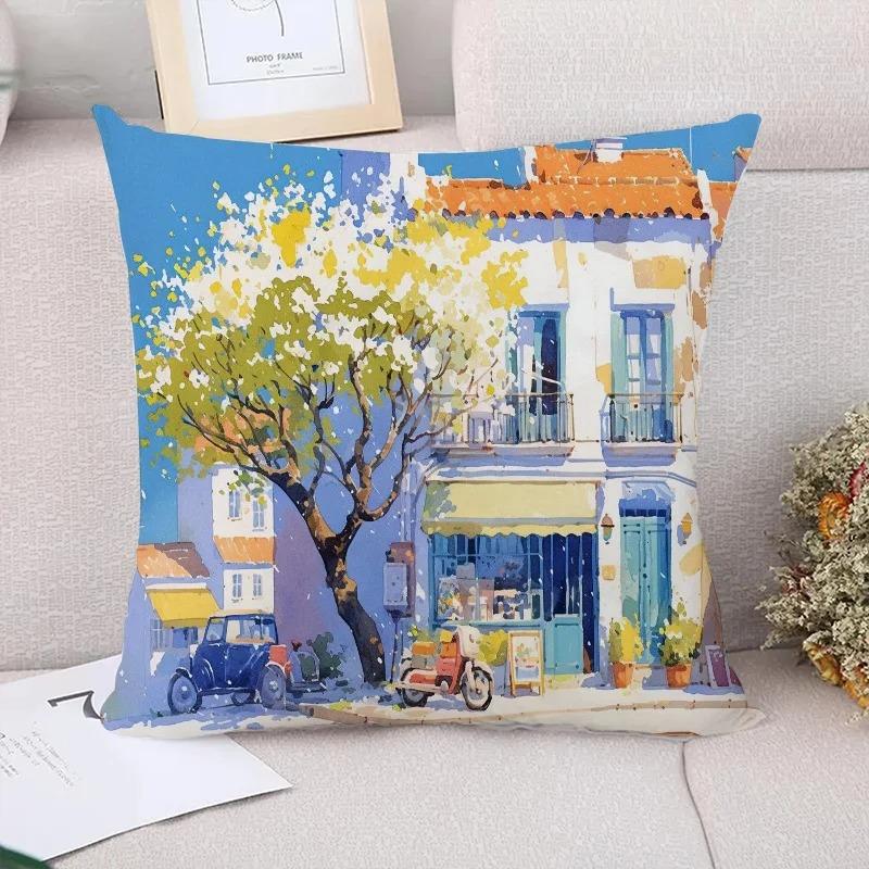 Мультяшная сцена Декоративная наволочка Гостиная Офис Дом Наволочка Украшения для автомобиля 40x40cm