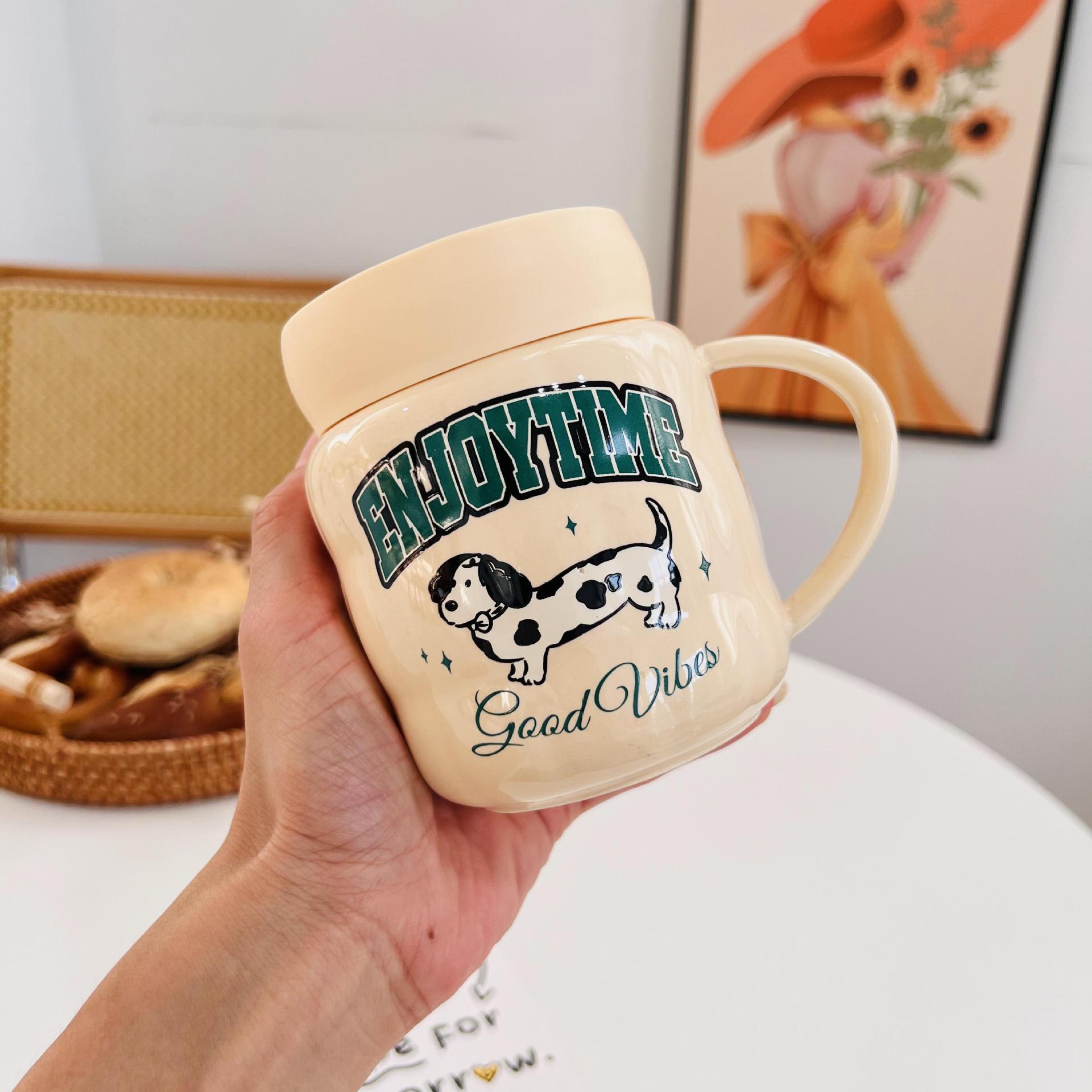 Мультяшная черная кошка с крышкой керамическая чашка милая кружка домашний костюм маленький подарок офисная питьевая вода чашка для девочек чашка 400ML