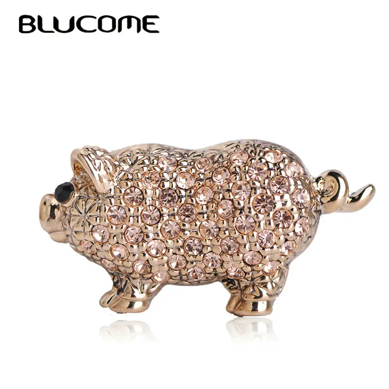 Blucome Cute Pig Brooches Full Crystal Brooch Jewelry For Women Animal Pet Accessories Bag Sweater Collar Coat Pin